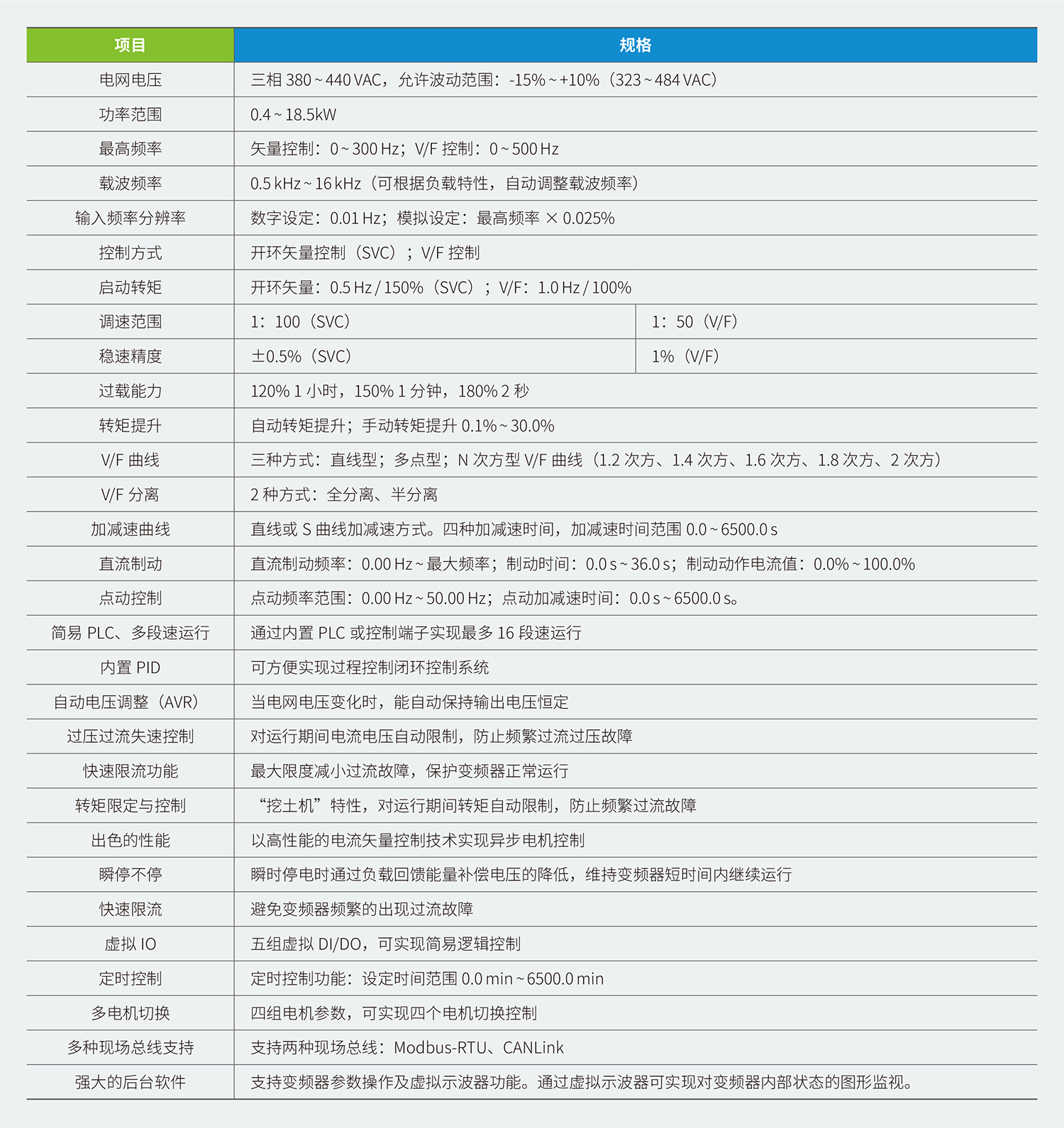 7、標配 RS485 通訊接口,支持 Modbus RTU 通訊,可擴展 CANLink,實現(xiàn)與匯川產(chǎn)品的快速總線聯(lián)接