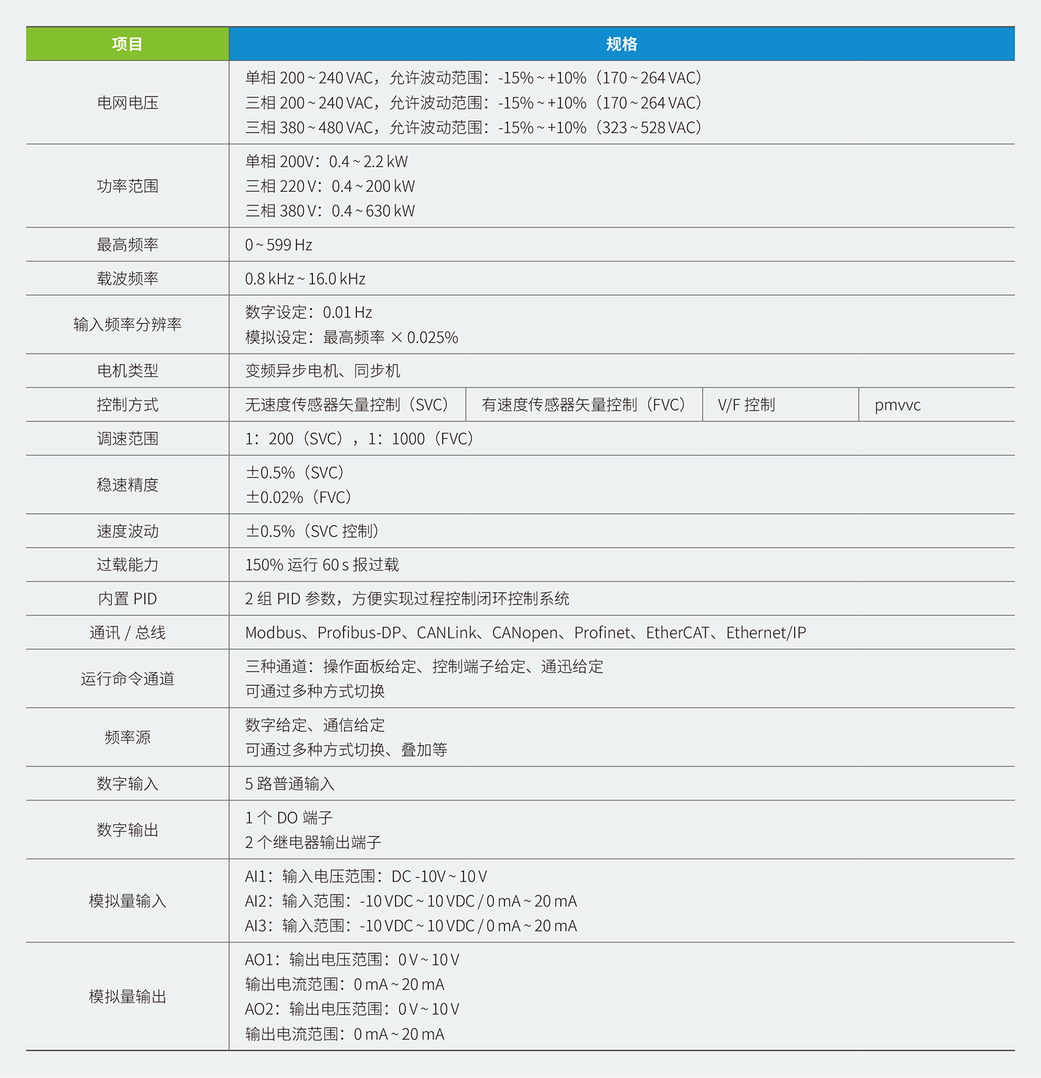 3、異步機控制性能突破:SVC 調(diào)速比提升至 1:1000;零速懸停 / 零速建張;大于 10% 輸出轉(zhuǎn)矩場合 SVC替代 FVC;SVC 收放卷轉(zhuǎn)矩精度≤ 5%